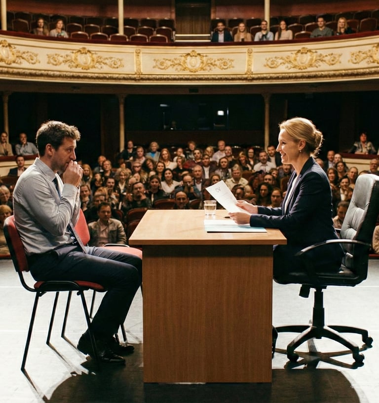 Una Comedy Teatrale che smaschera le assurdità dei colloqui di lavoro, unita a un intervento TED-style per trasformare la risata in apprendimento.